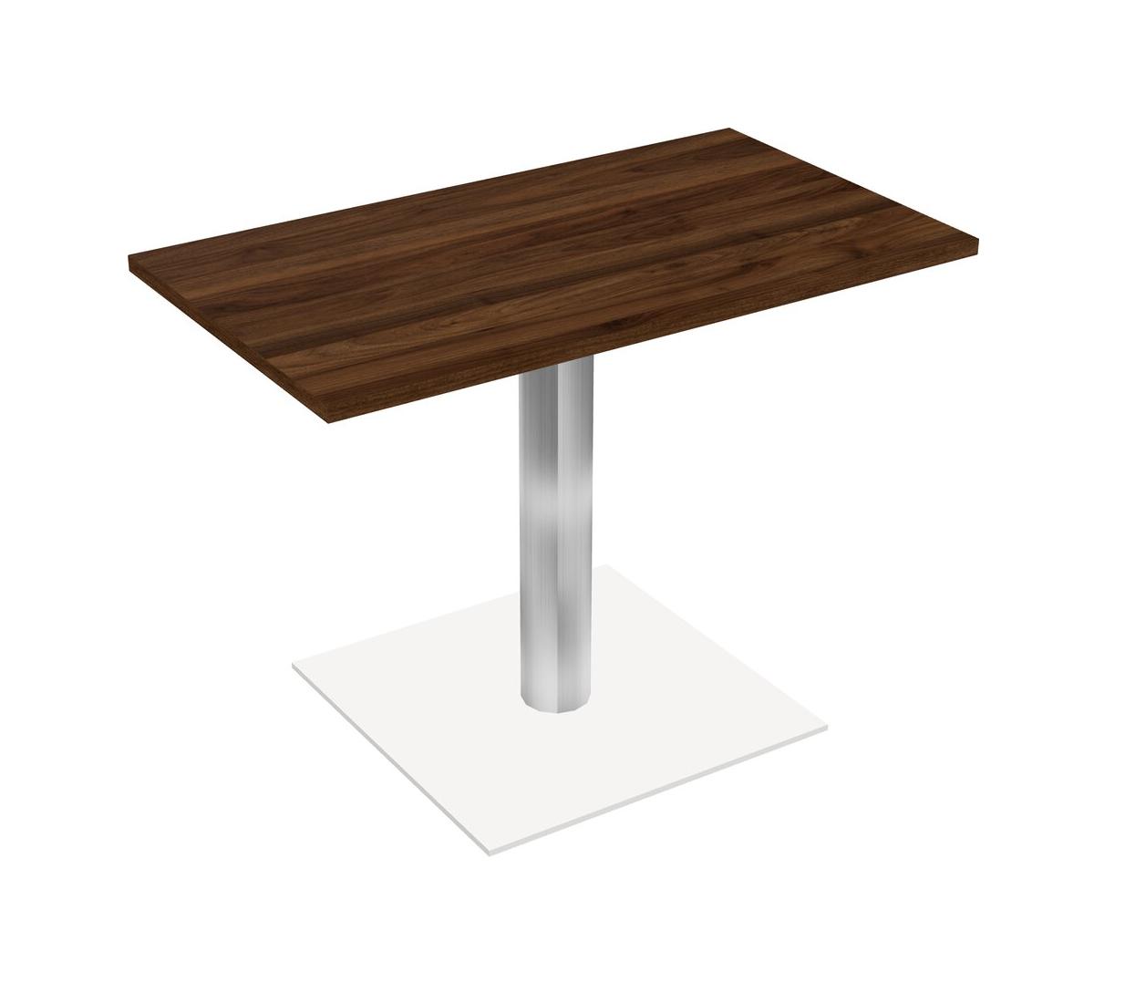 Modular Office, Restaurant, Cafeteria, Lunch Room & Food Service Table With Columbia Walnut Tabletop & Chrome Round Leg & White Square Base Plate