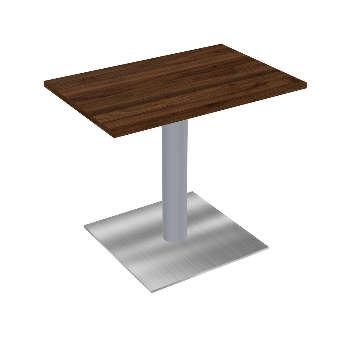 Modular Office, Restaurant, Cafeteria, Lunch Room & Food Service Table With Columbia Walnut Tabletop & Grey Round Leg & Chrome Square Base Plate