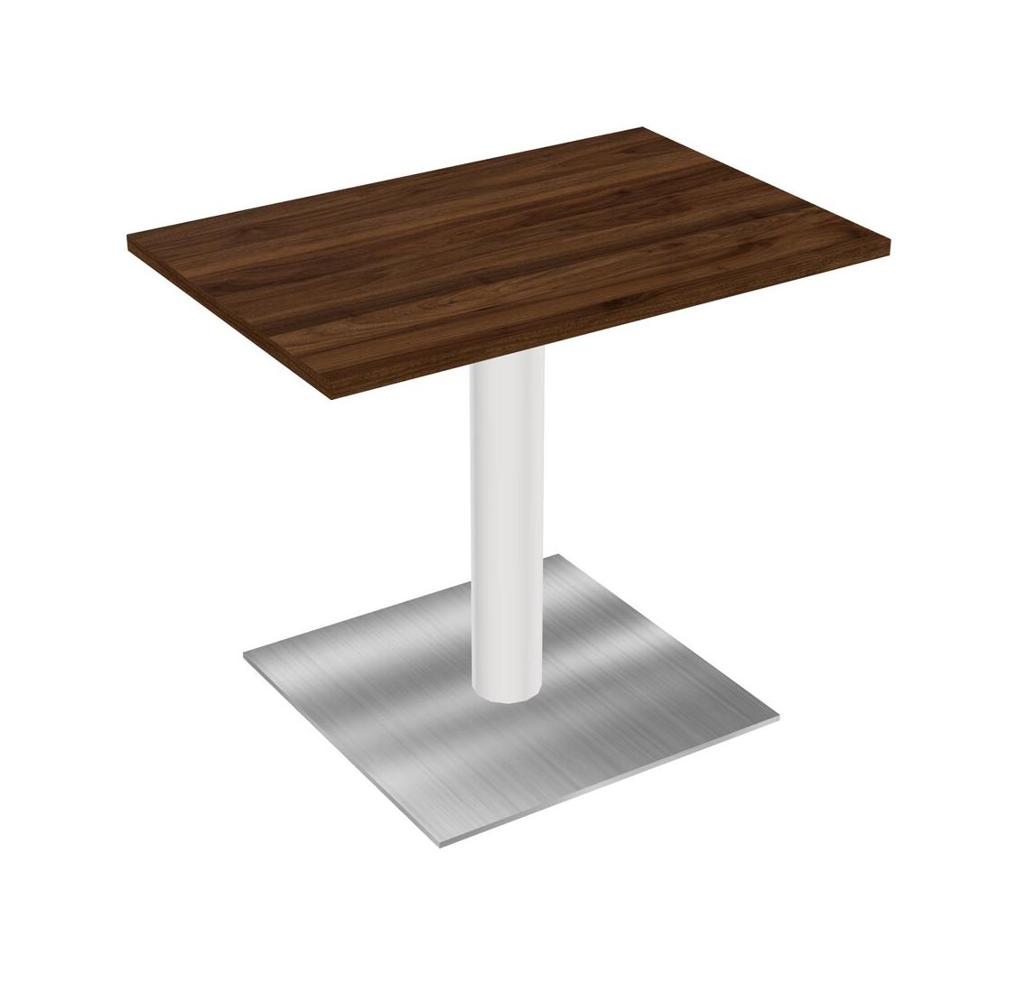 Modular Office, Restaurant, Cafeteria, Lunch Room & Food Service Table With Columbia Walnut Tabletop & White Round Leg & Chrome Square Base Plate