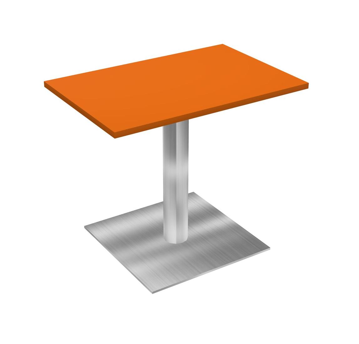 Modular Office, Restaurant, Cafeteria, Lunch Room & Food Service Table With Orange Tabletop & Chrome Round Leg & Chrome Square Base Plate