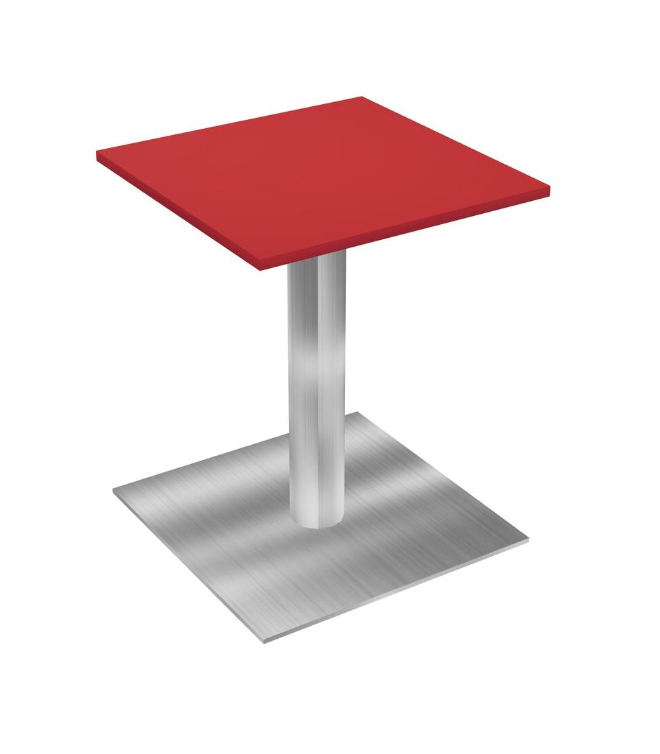 Modular Office, Restaurant, Cafeteria, Lunch Room & Food Service Table With Prism Red Tabletop & Chrome Round Leg & Chrome Square Base Plate