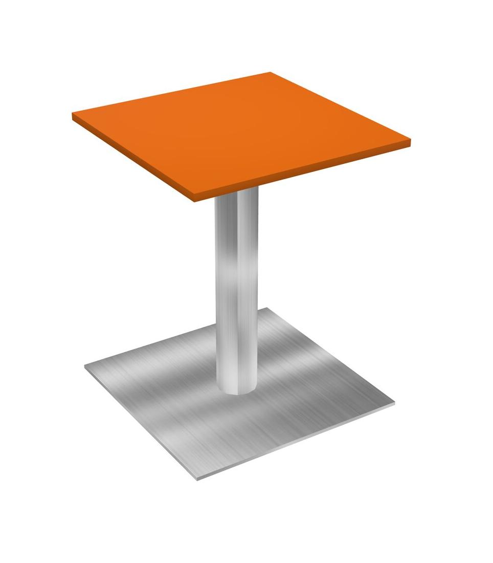 Modular Office, Restaurant, Cafeteria, Lunch Room & Food Service Table With Orange Tabletop & Chrome Round Leg & Chrome Square Base Plate