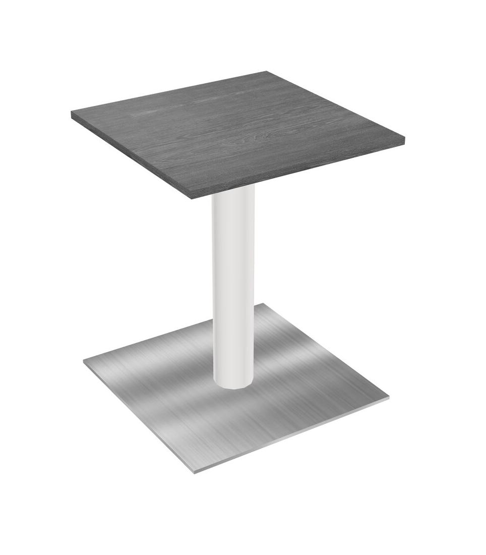 Modular Office, Restaurant, Cafeteria, Lunch Room & Food Service Table With Grey Tabletop & White Round Leg & Chrome Square Base Plate