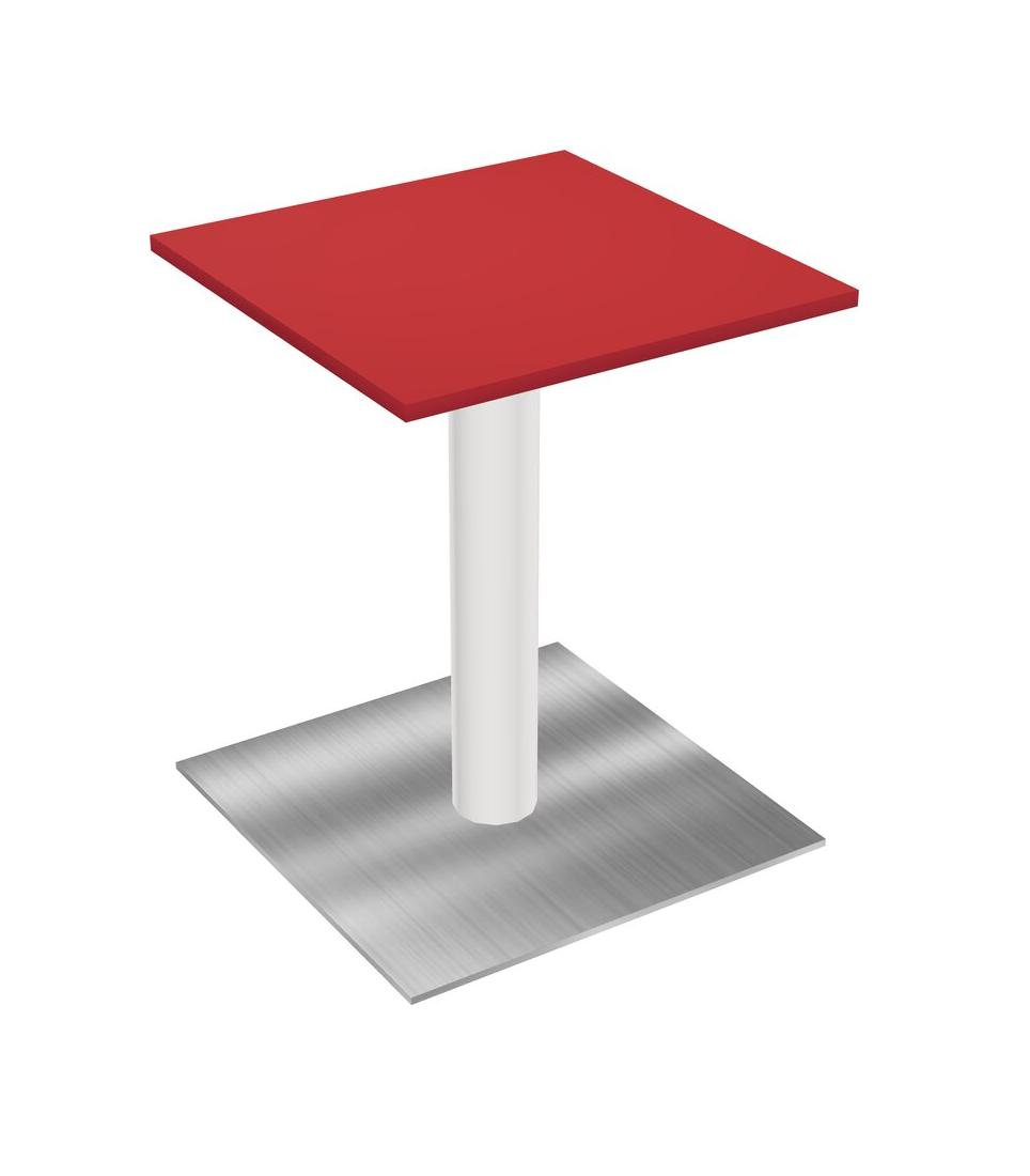 Modular Office, Restaurant, Cafeteria, Lunch Room & Food Service Table With Prism Red Tabletop & White Round Leg & Chrome Square Base Plate