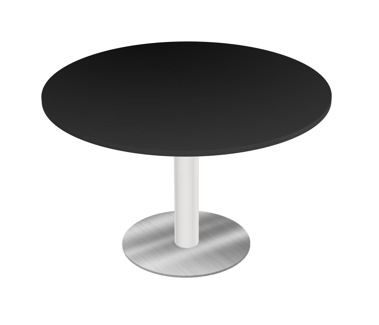 Modular Office, Restaurant, Cafeteria, Lunch Room & Food Service Table With Black Tabletop & White Round Leg & Chrome Round Base Plate