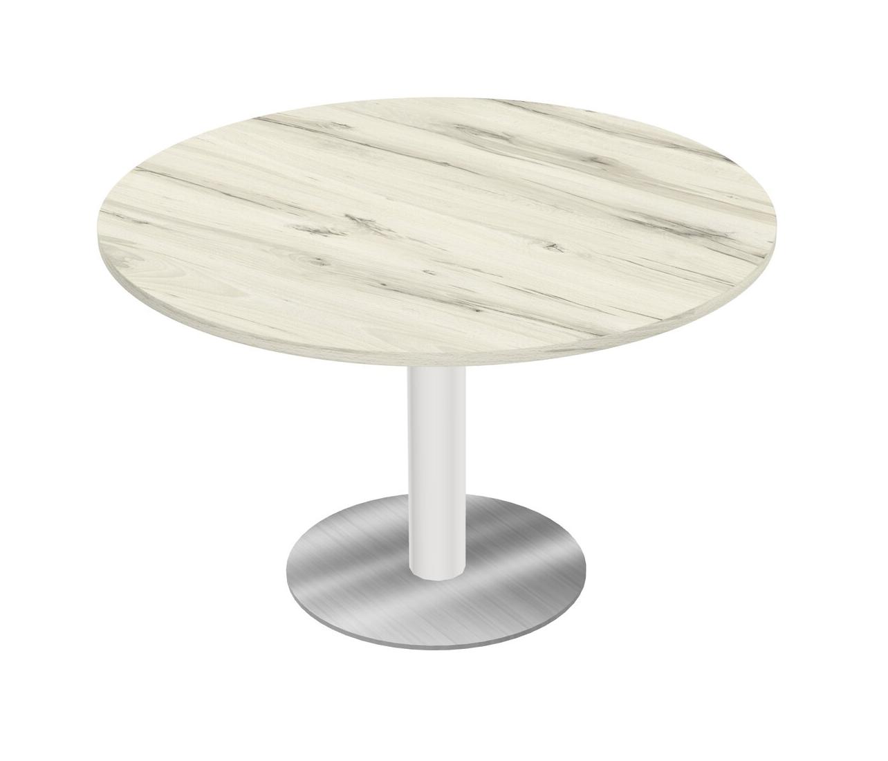 Modular Office, Restaurant, Cafeteria, Lunch Room & Food Service Table With Heinne Holz Tabletop & White Round Leg & Chrome Round Base Plate