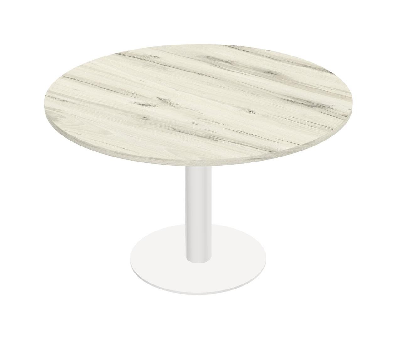 Modular Office, Restaurant, Cafeteria, Lunch Room & Food Service Table With Heinne Holz Tabletop & White Round Leg & White Round Base Plate