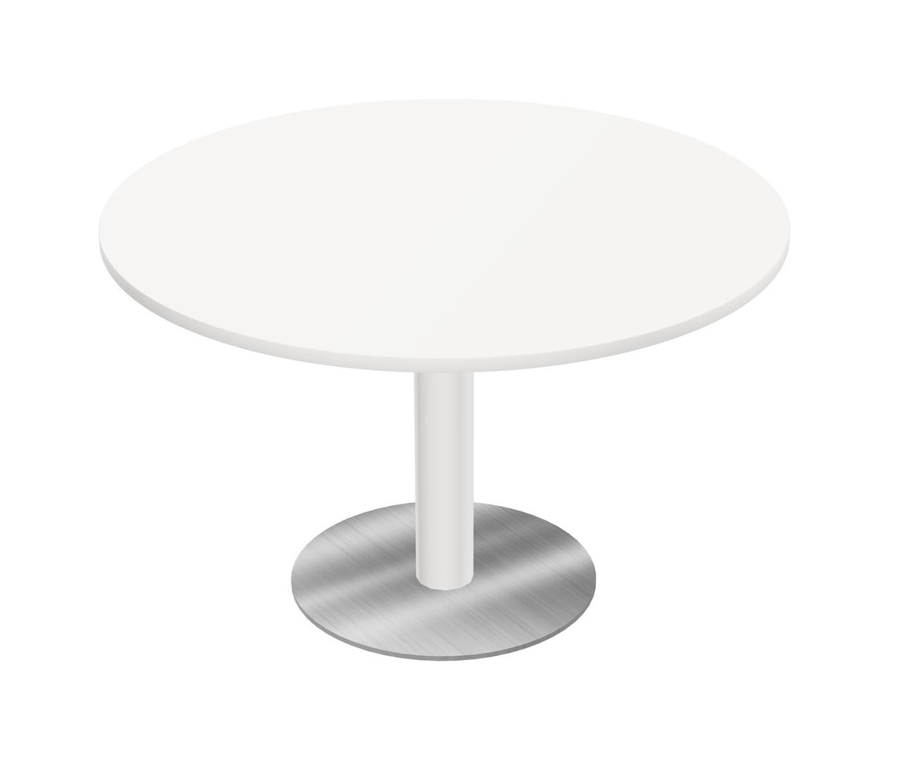 Modular Office, Restaurant, Cafeteria, Lunch Room & Food Service Table With White Tabletop & White Round Leg & Chrome Round Base Plate