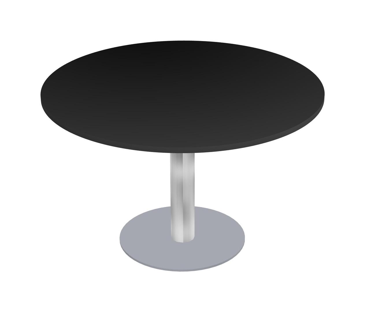 Modular Office, Restaurant, Cafeteria, Lunch Room & Food Service Table With Black Tabletop & Chrome Round Leg & Grey Round Base Plate