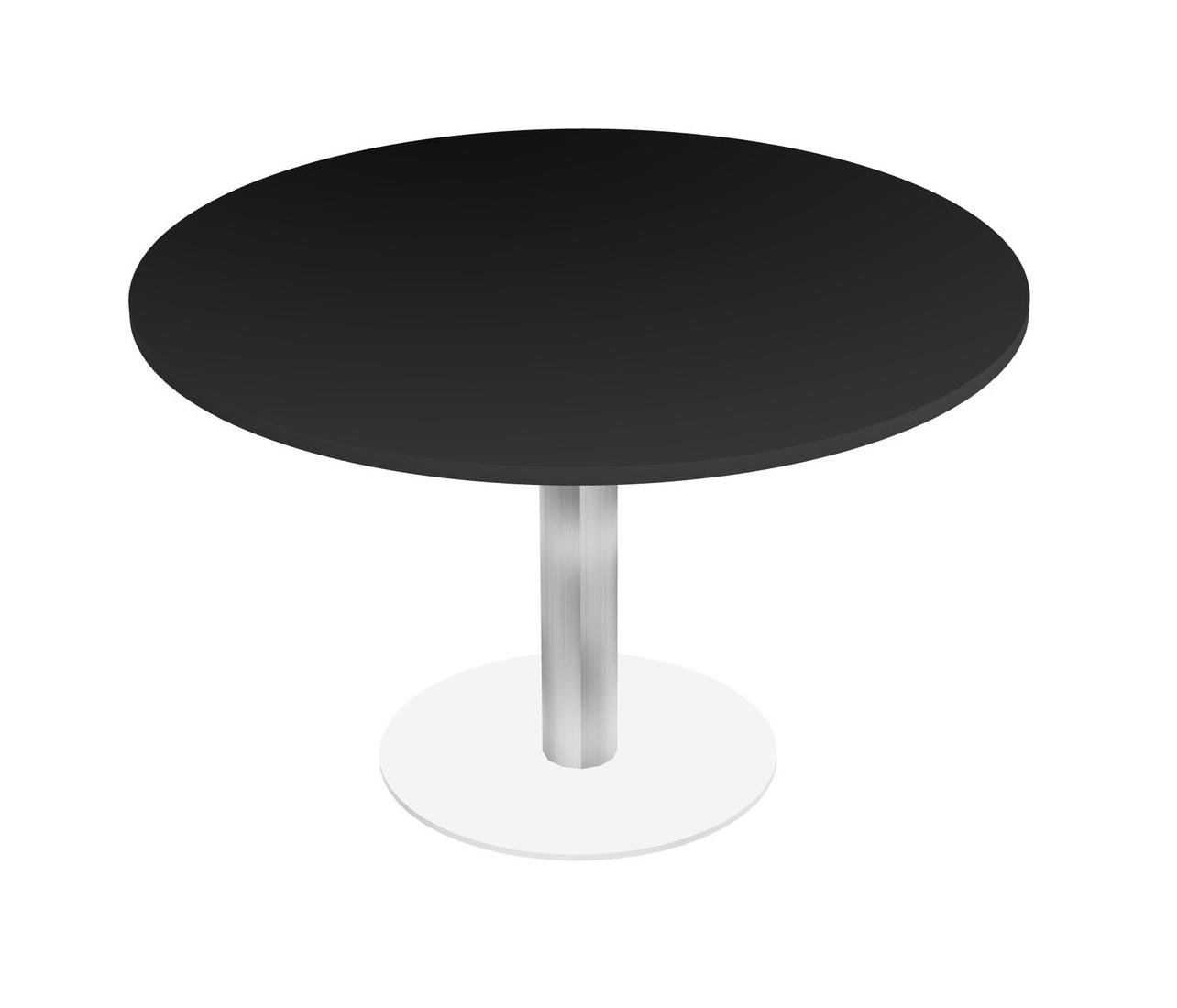 Modular Office, Restaurant, Cafeteria, Lunch Room & Food Service Table With Black Tabletop & Chrome Round Leg & White Round Base Plate
