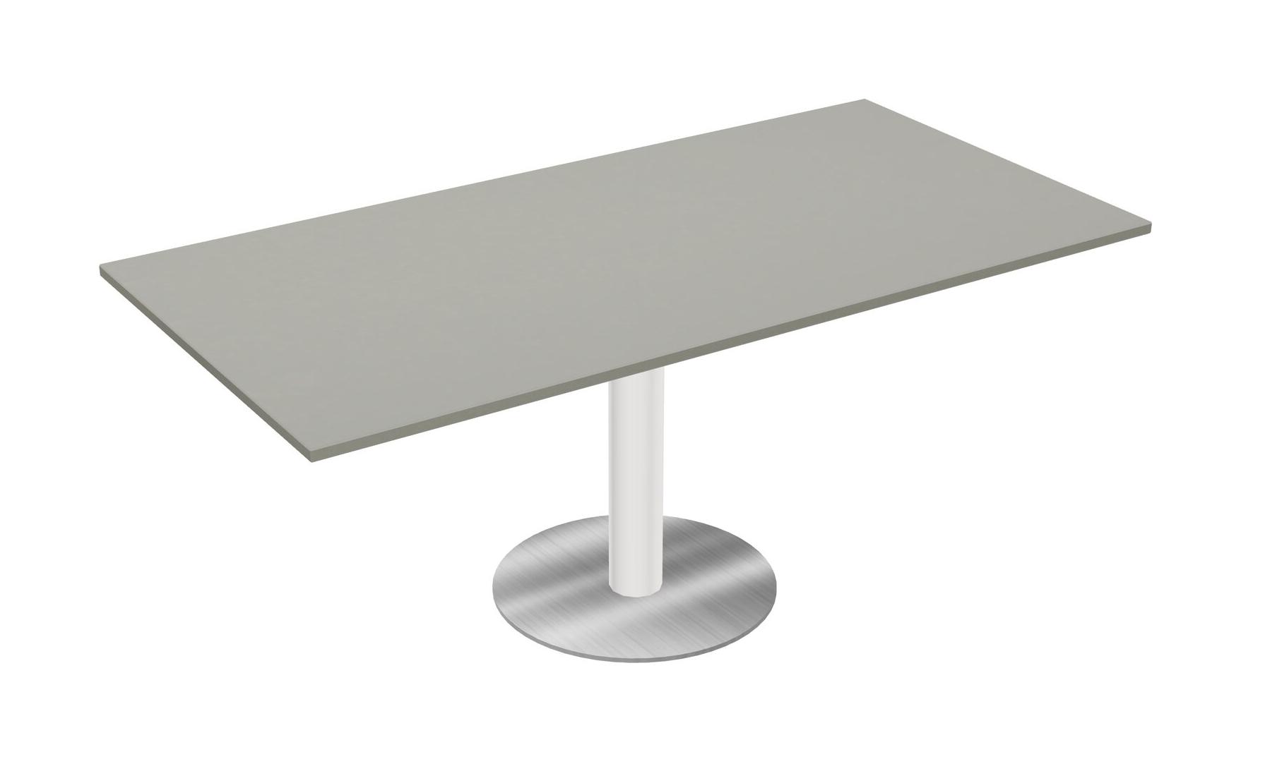 Modular Office, Restaurant, Cafeteria, Lunch Room & Food Service Table With Grey Shadows Tabletop & White Round Leg & Chrome Round Base Plate