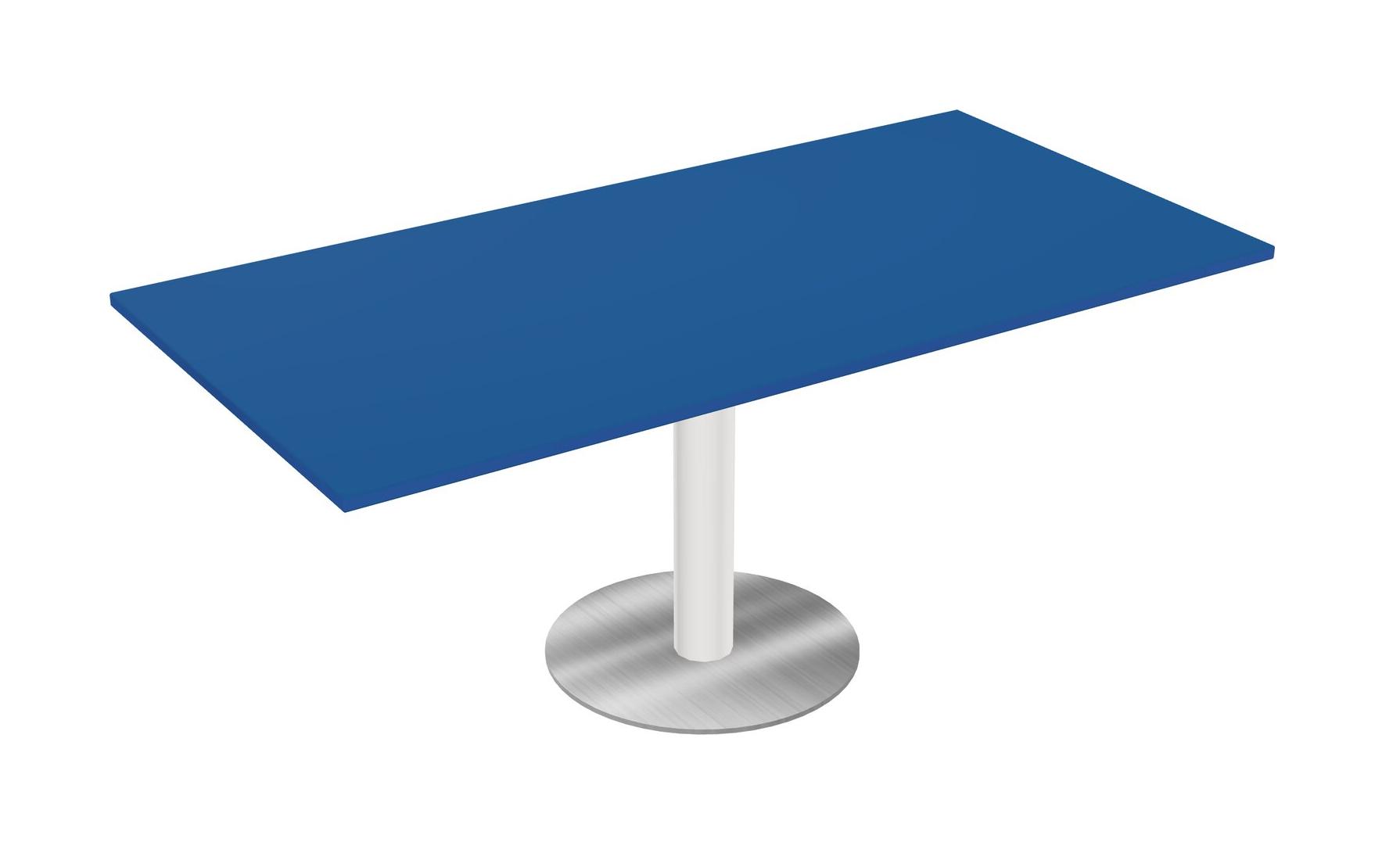 Modular Office, Restaurant, Cafeteria, Lunch Room & Food Service Table With Prism Blue Tabletop & White Round Leg & Chrome Round Base Plate