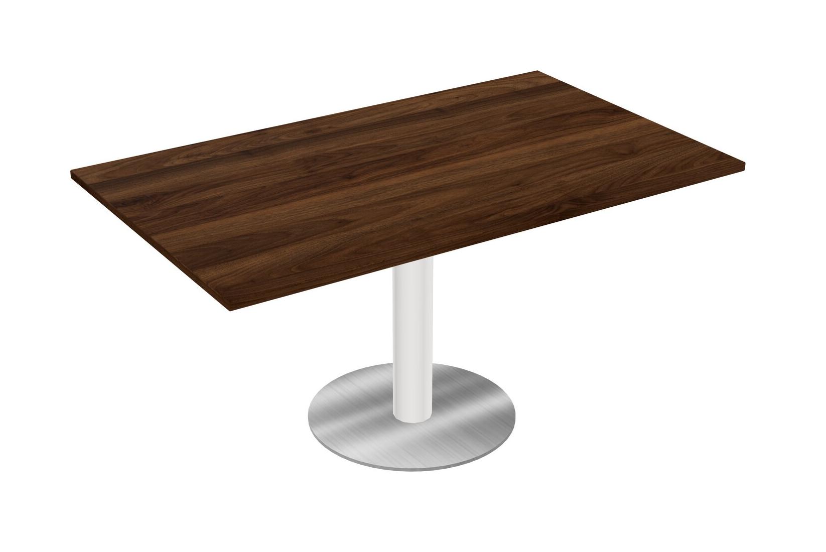 Modular Office, Restaurant, Cafeteria, Lunch Room & Food Service Table With Columbia Walnut Tabletop & White Round Leg & Chrome Round Base Plate