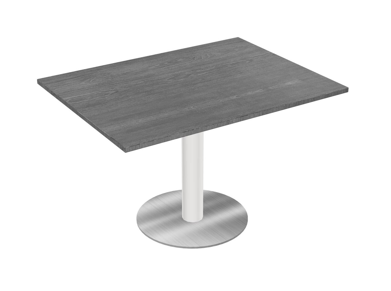 Modular Office, Restaurant, Cafeteria, Lunch Room & Food Service Table With Grey Tabletop & White Round Leg & Chrome Round Base Plate