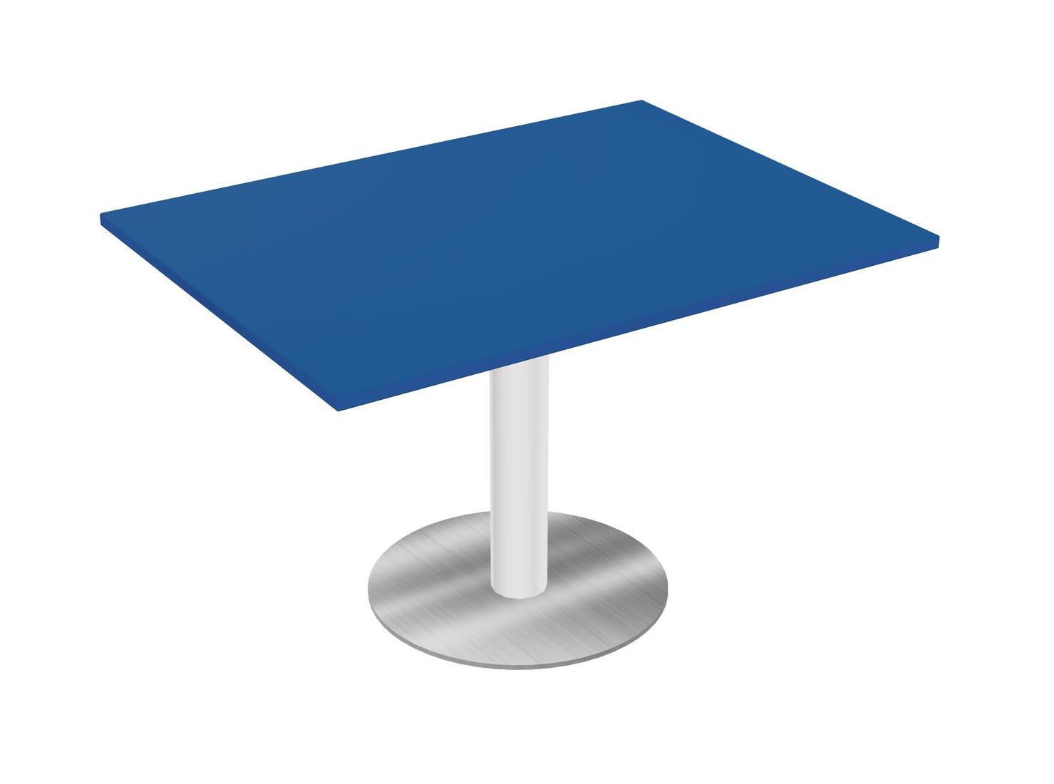 Modular Office, Restaurant, Cafeteria, Lunch Room & Food Service Table With Prism Blue Tabletop & White Round Leg & Chrome Round Base Plate