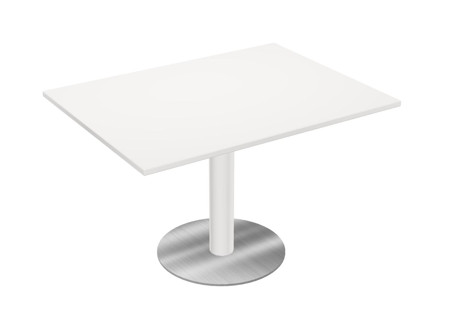 Modular Office, Restaurant, Cafeteria, Lunch Room & Food Service Table With White Tabletop & White Round Leg & Chrome Round Base Plate