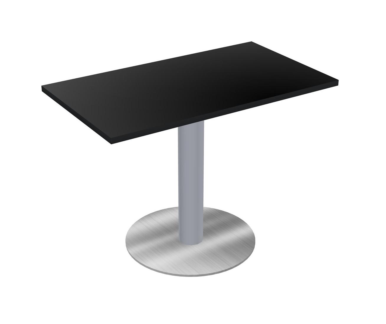 Modular Office, Restaurant, Cafeteria, Lunch Room & Food Service Table With Black Tabletop & Grey Round Leg & Chrome Round Base Plate