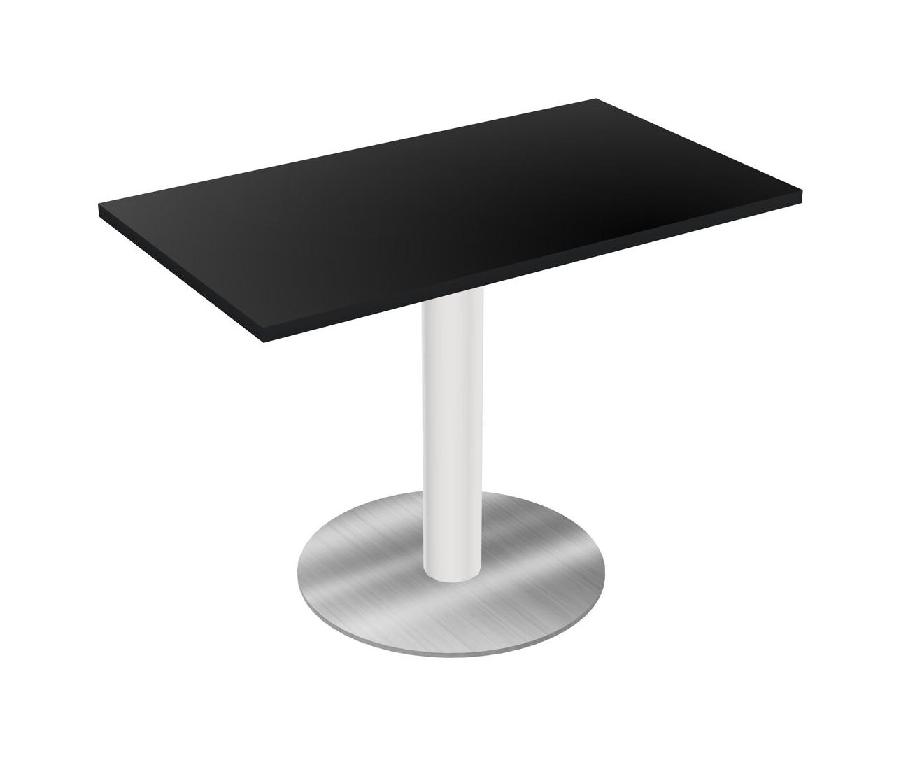 Modular Office, Restaurant, Cafeteria, Lunch Room & Food Service Table With Black Tabletop & White Round Leg & Chrome Round Base Plate