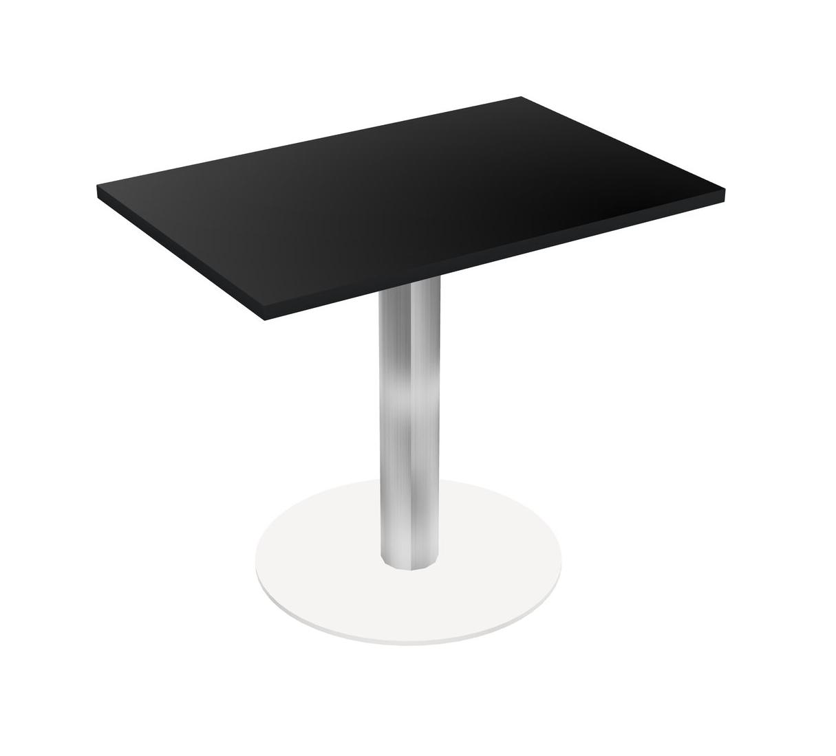 Modular Office, Restaurant, Cafeteria, Lunch Room & Food Service Table With Black Tabletop & Chrome Round Leg & White Round Base Plate