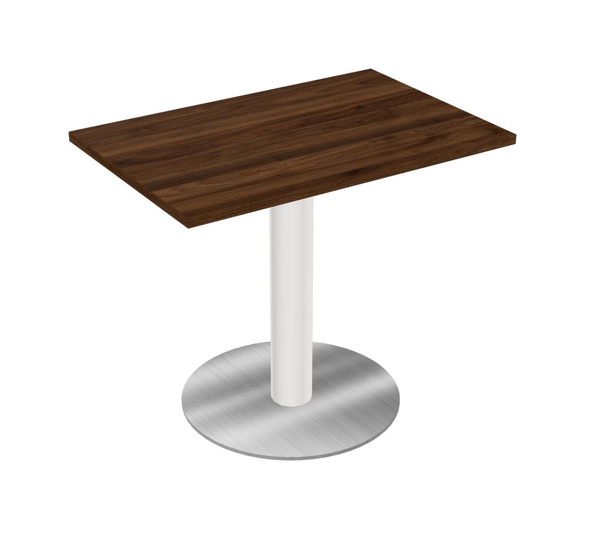 Modular Office, Restaurant, Cafeteria, Lunch Room & Food Service Table With Columbia Walnut Tabletop & White Round Leg & Chrome Round Base Plate