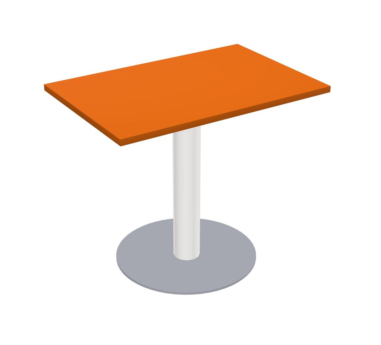 Modular Office, Restaurant, Cafeteria, Lunch Room & Food Service Table With Orange Tabletop & White Round Leg & Grey Round Base Plate