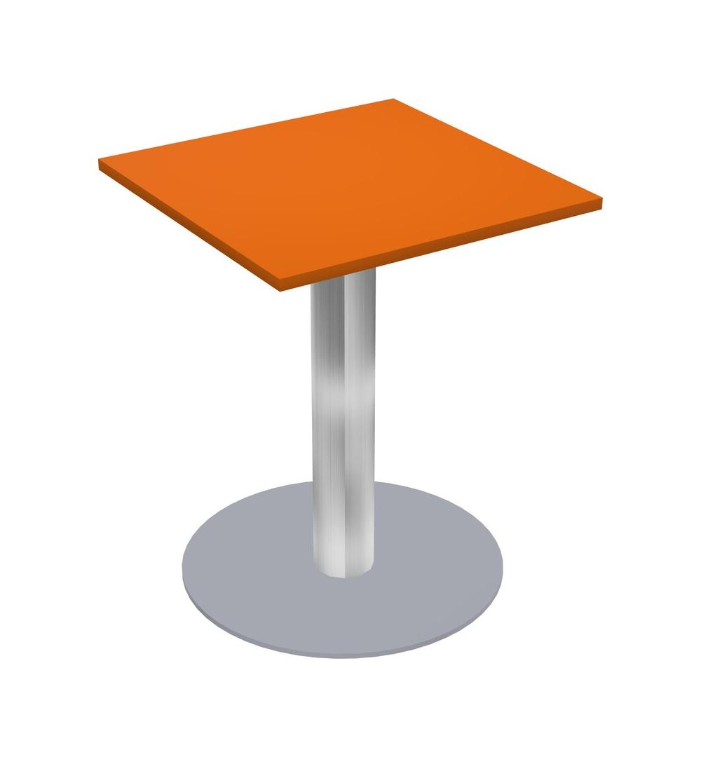 Modular Office, Restaurant, Cafeteria, Lunch Room & Food Service Table With Orange Tabletop & Chrome Round Leg & Grey Round Base Plate