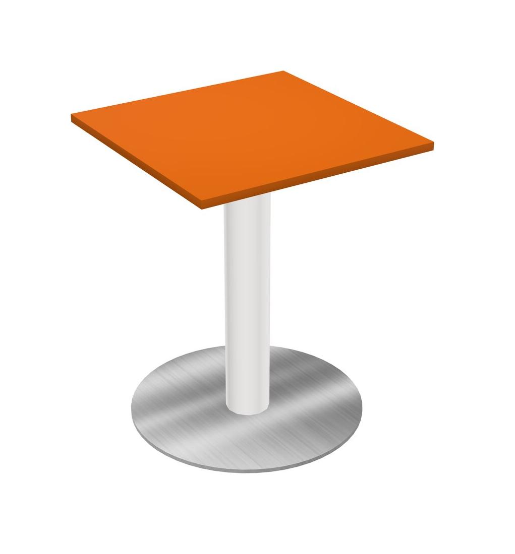 Modular Office, Restaurant, Cafeteria, Lunch Room & Food Service Table With Orange Tabletop & White Round Leg & Chrome Round Base Plate