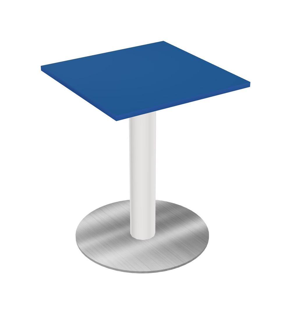 Modular Office, Restaurant, Cafeteria, Lunch Room & Food Service Table With Prism Blue Tabletop & White Round Leg & Chrome Round Base Plate