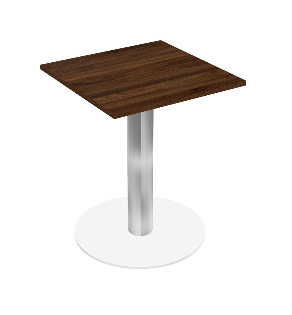 Modular Office, Restaurant, Cafeteria, Lunch Room & Food Service Table With Columbia Walnut Tabletop & Chrome Round Leg & White Round Base Plate