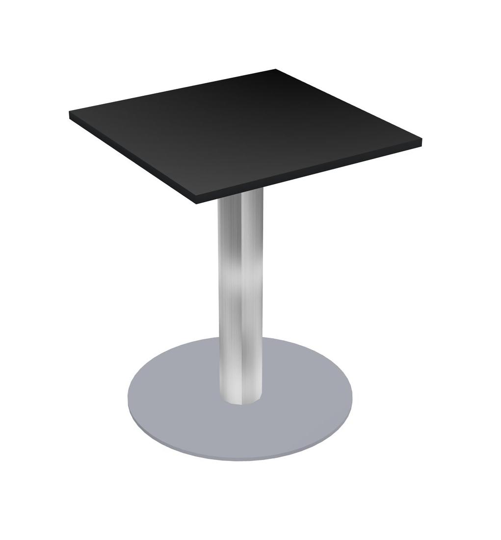 Modular Office, Restaurant, Cafeteria, Lunch Room & Food Service Table With Black Tabletop & Chrome Round Leg & Grey Round Base Plate