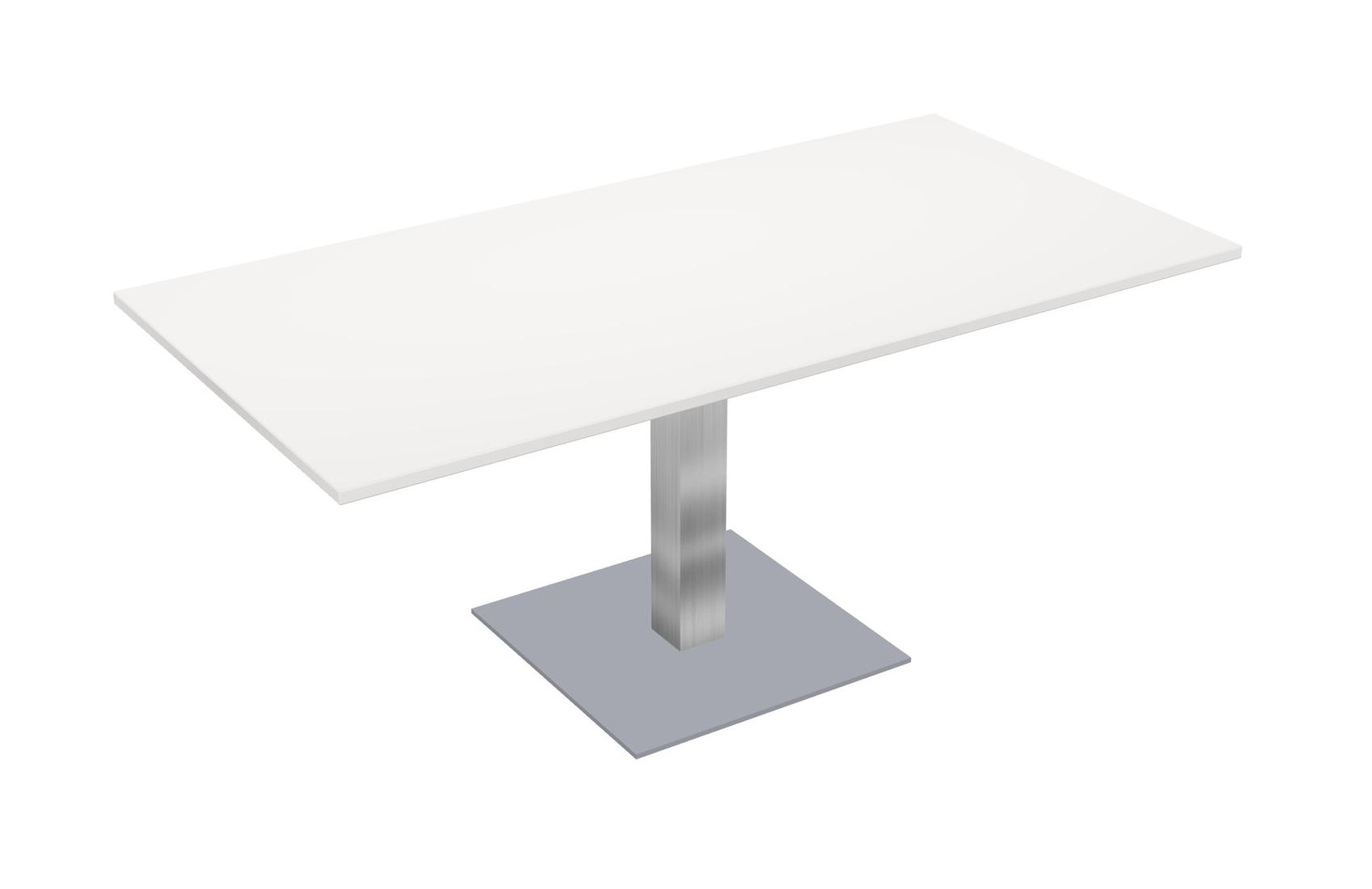 Modular Office, Restaurant, Cafeteria, Lunch Room & Food Service Table With White Tabletop & Chrome Square Leg & Grey Square Base Plate