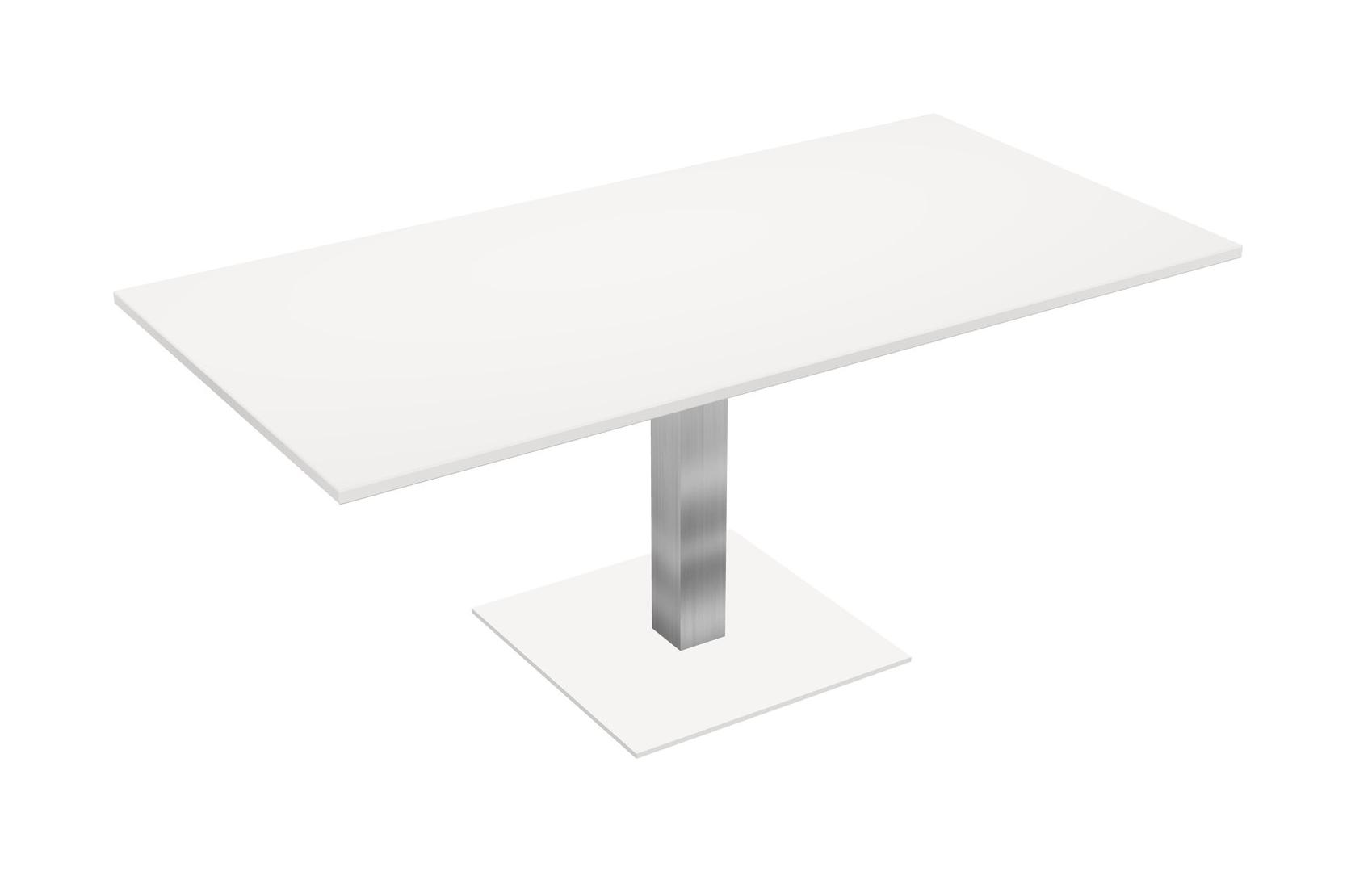 Modular Office, Restaurant, Cafeteria, Lunch Room & Food Service Table With White Tabletop & Chrome Square Leg & White Square Base Plate
