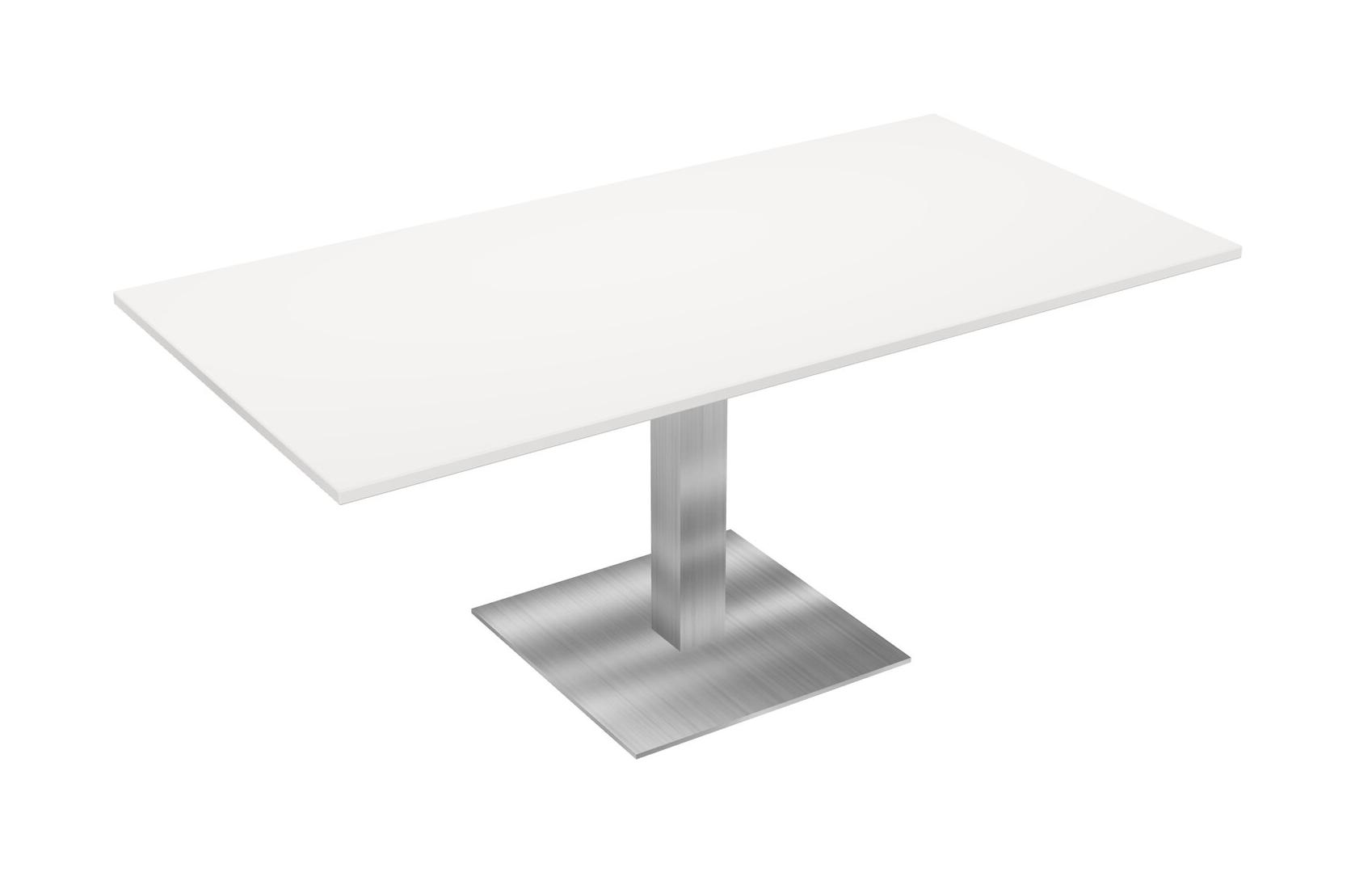 Modular Office, Restaurant, Cafeteria, Lunch Room & Food Service Table With White Tabletop & Chrome Square Leg & Chrome Square Base Plate