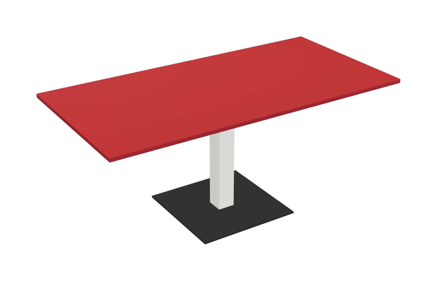 Modular Office, Restaurant, Cafeteria, Lunch Room & Food Service Table With Prism Red Tabletop & White Square Leg & Black Square Base Plate