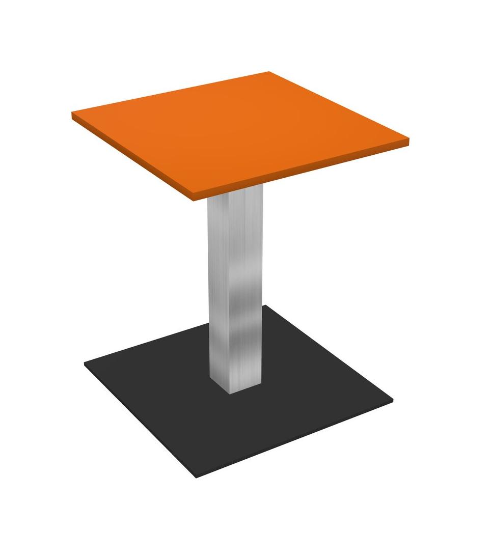 Modular Office, Restaurant, Cafeteria, Lunch Room & Food Service Table With Orange Tabletop & Chrome Square Leg & Black Square Base Plate
