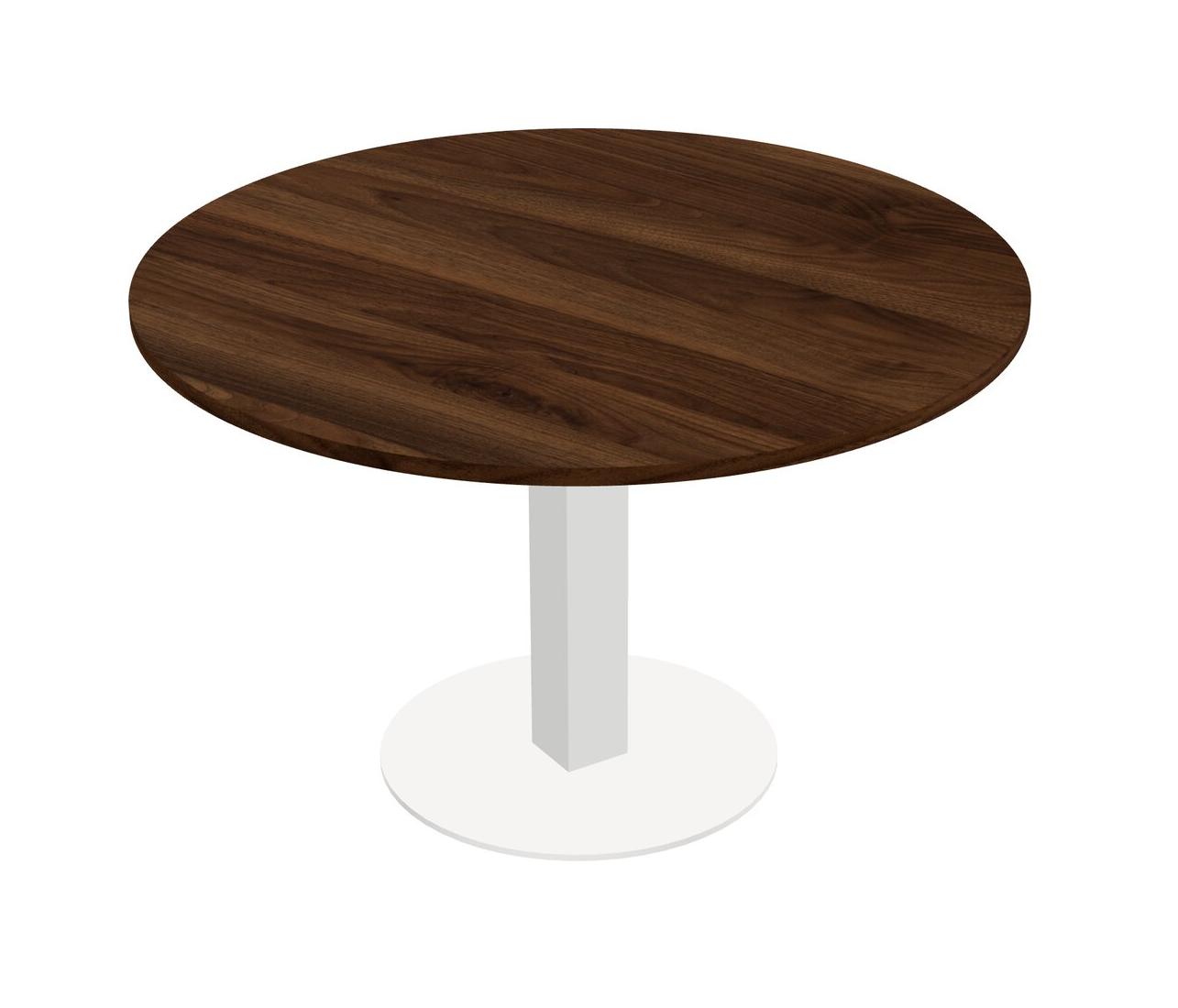 Modular Office, Restaurant, Cafeteria, Lunch Room & Food Service Table With Columbia Walnut Tabletop & White Square Leg & White Round Base Plate