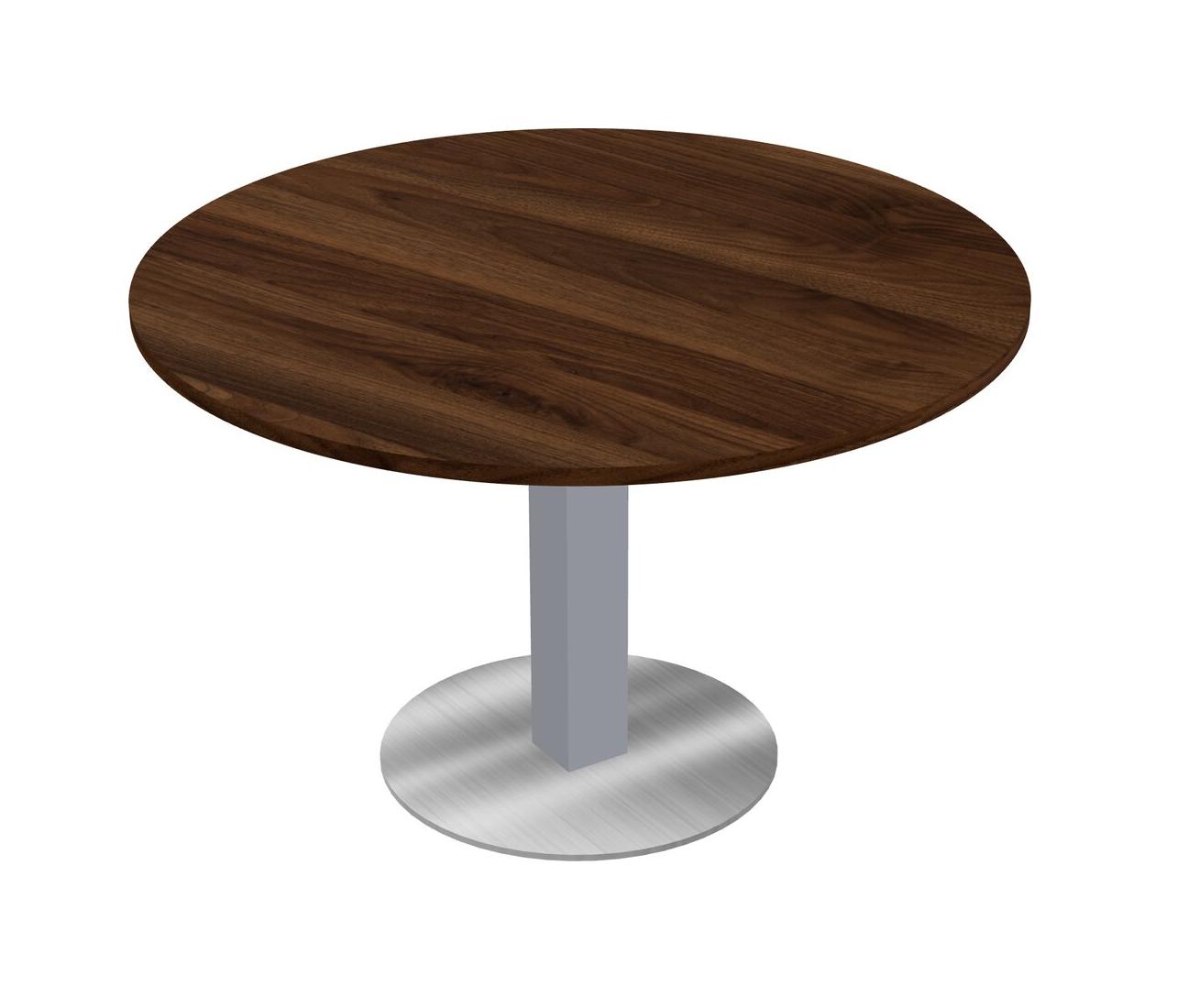 Modular Office, Restaurant, Cafeteria, Lunch Room & Food Service Table With Columbia Walnut Tabletop & Grey Square Leg & Chrome Round Base Plate