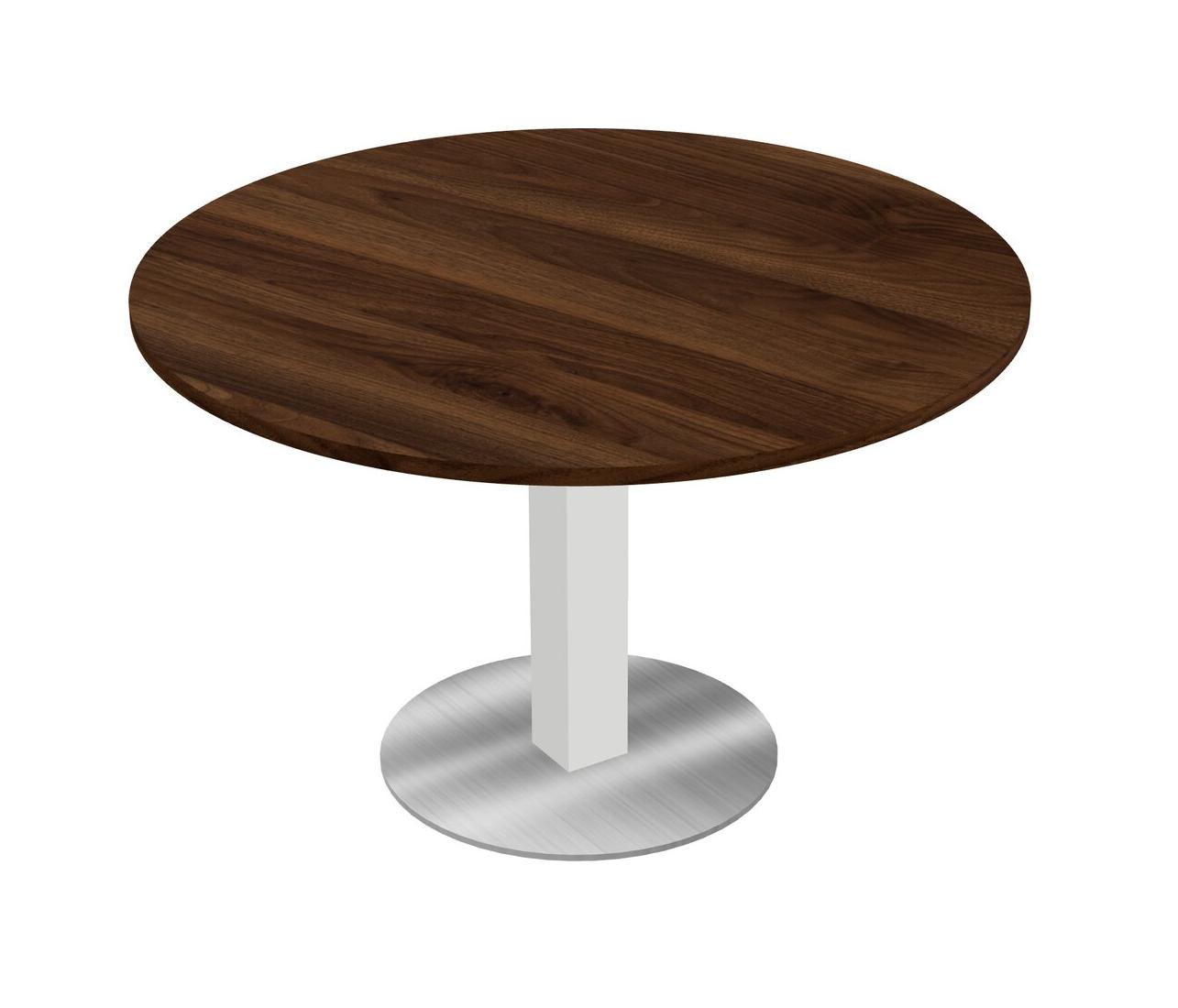 Modular Office, Restaurant, Cafeteria, Lunch Room & Food Service Table With Columbia Walnut Tabletop & White Square Leg & Chrome Round Base Plate