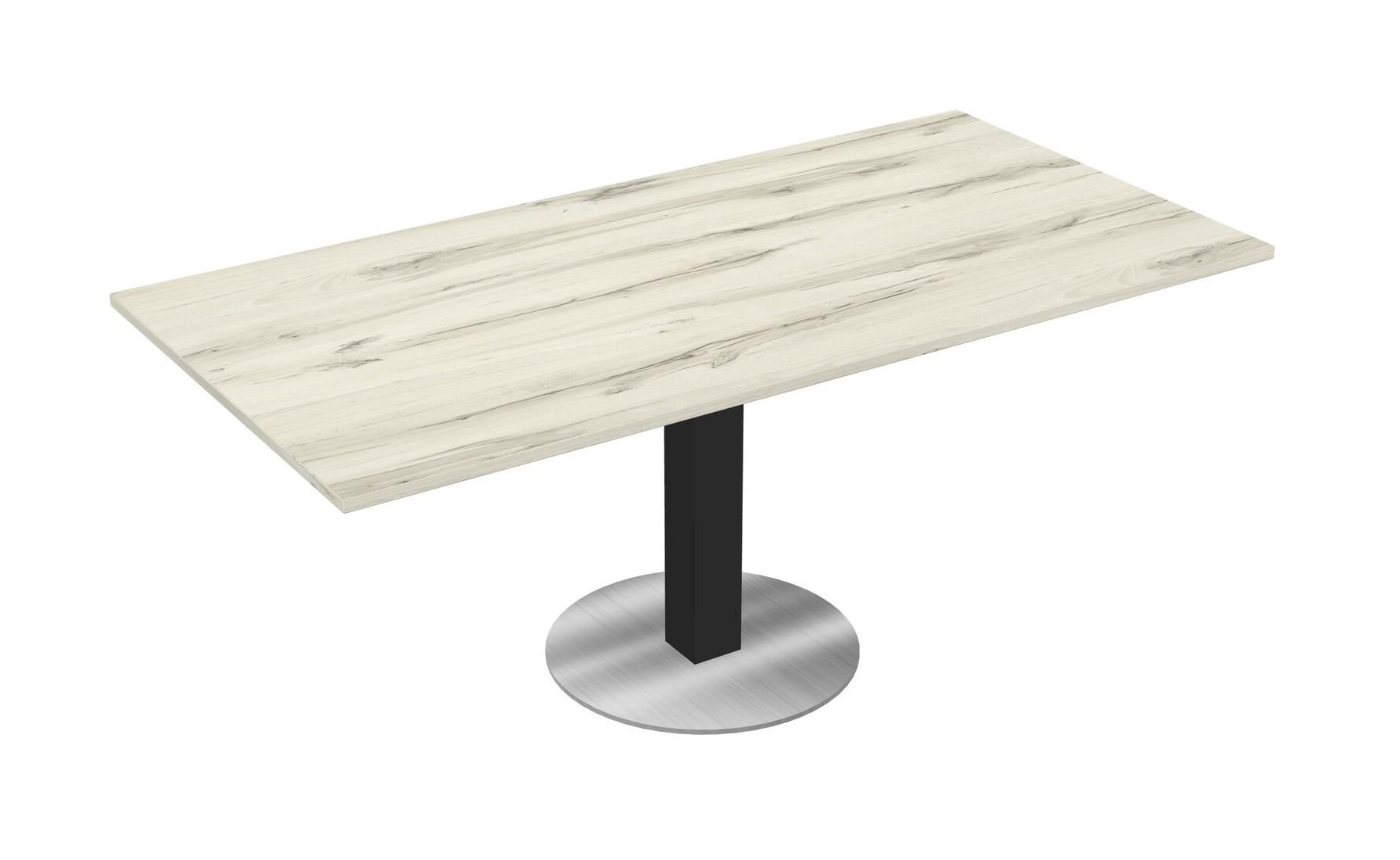 Modular Office, Restaurant, Cafeteria, Lunch Room & Food Service Table With Heinne Holz Tabletop & Black Square Leg & Chrome Round Base Plate