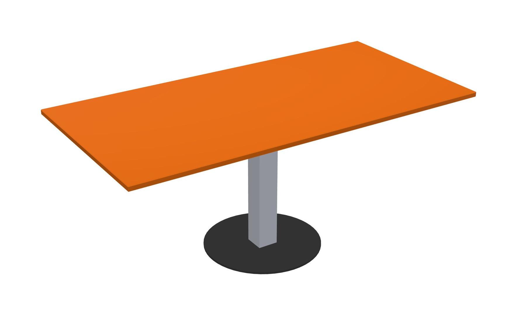 Modular Office, Restaurant, Cafeteria, Lunch Room & Food Service Table With Orange Tabletop & Grey Square Leg & Black Round Base Plate