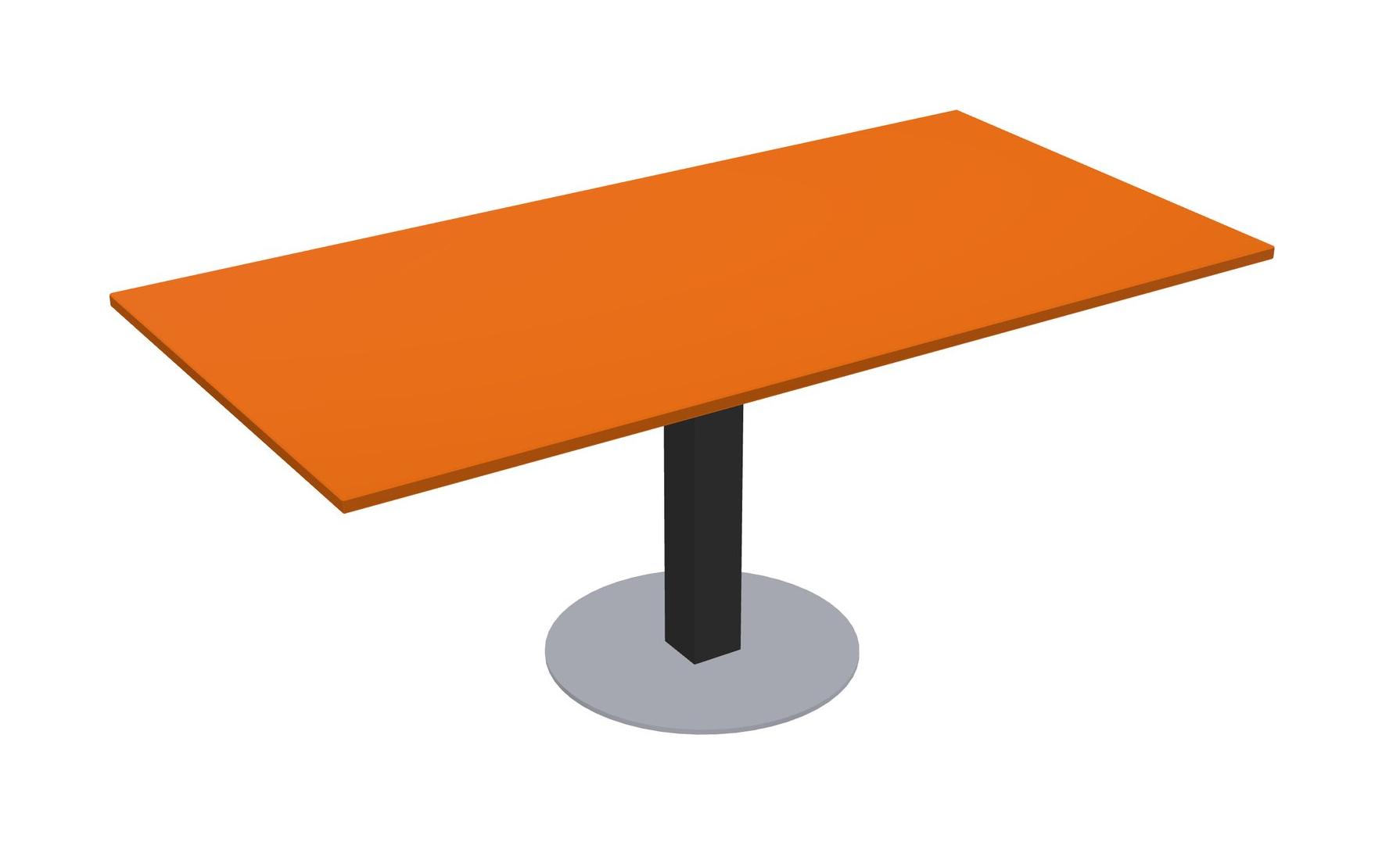 Modular Office, Restaurant, Cafeteria, Lunch Room & Food Service Table With Orange Tabletop & Black Square Leg & Grey Round Base Plate