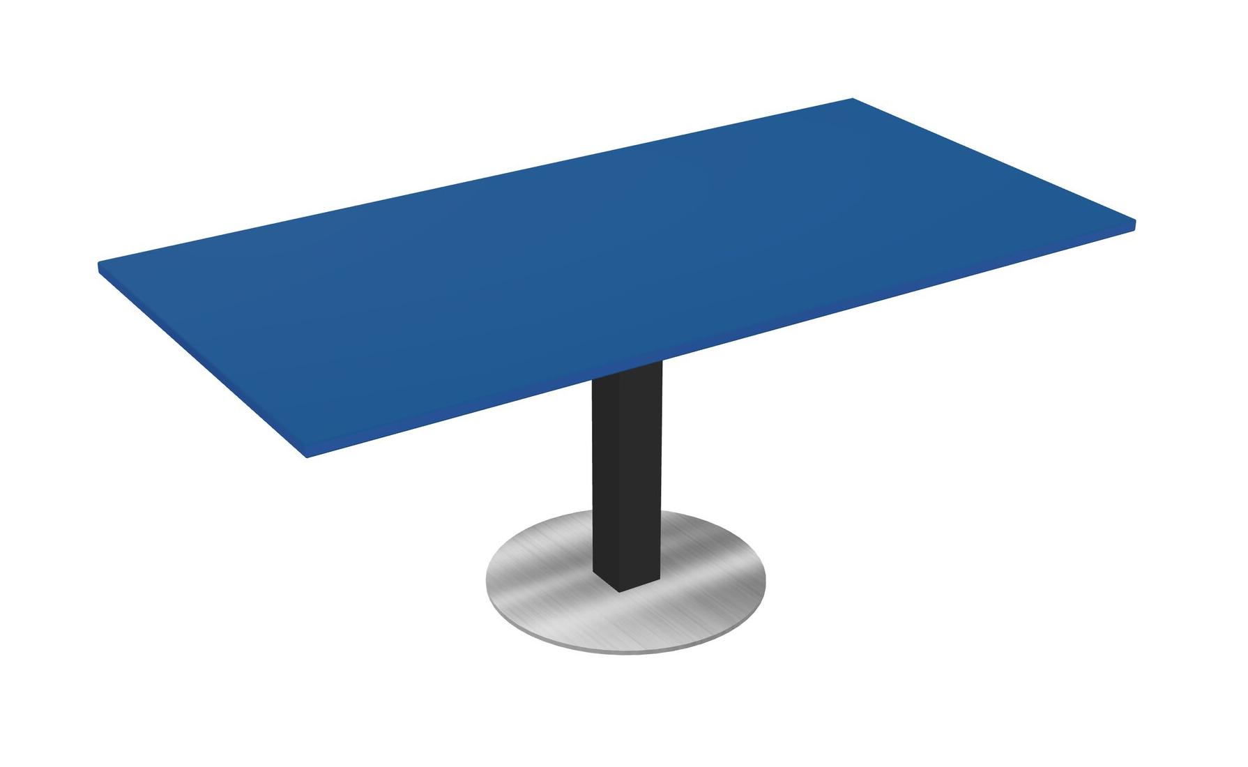 Modular Office, Restaurant, Cafeteria, Lunch Room & Food Service Table With Prism Blue Tabletop & Black Square Leg & Chrome Round Base Plate