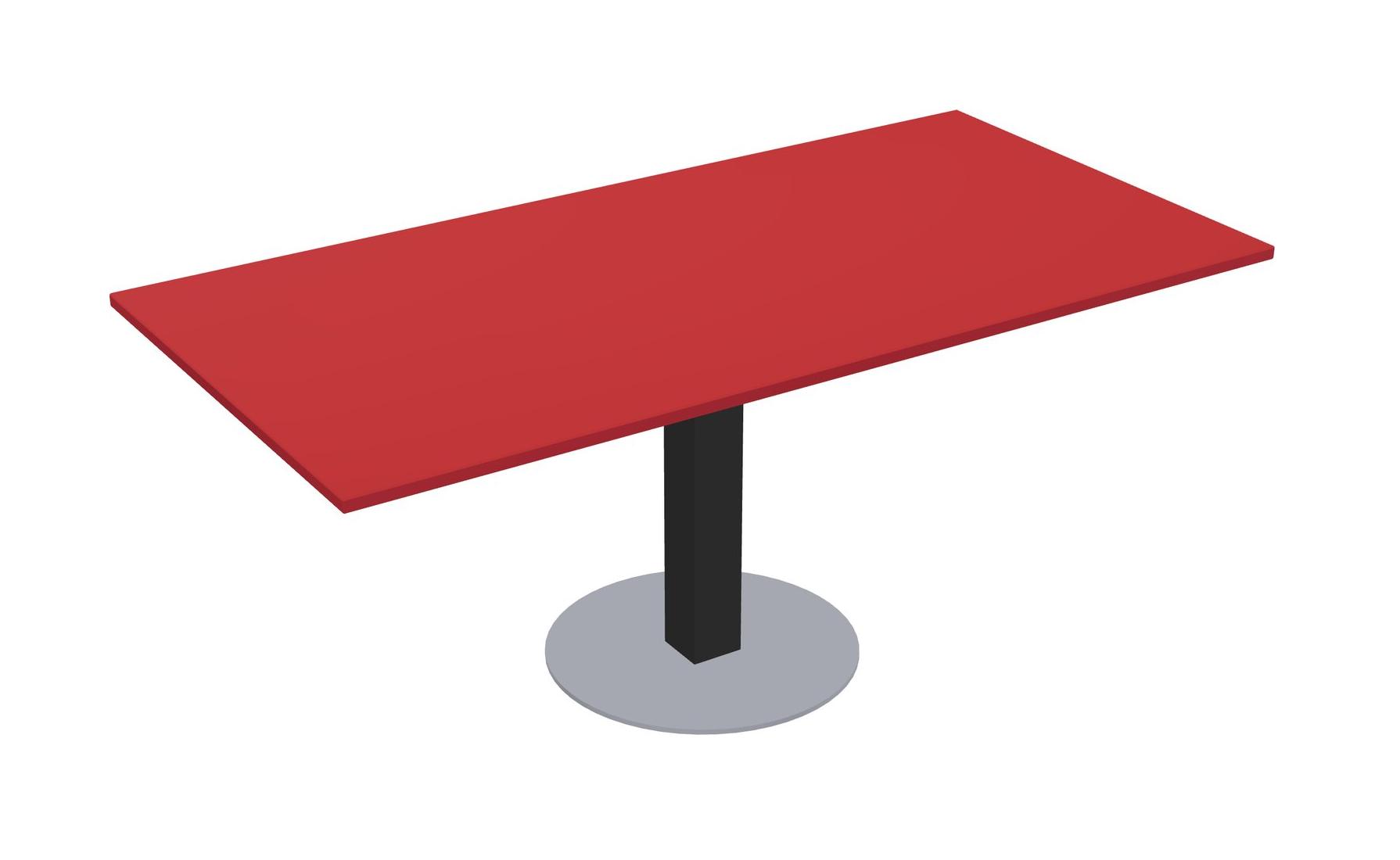 Modular Office, Restaurant, Cafeteria, Lunch Room & Food Service Table With Prism Red Tabletop & Black Square Leg & Grey Round Base Plate
