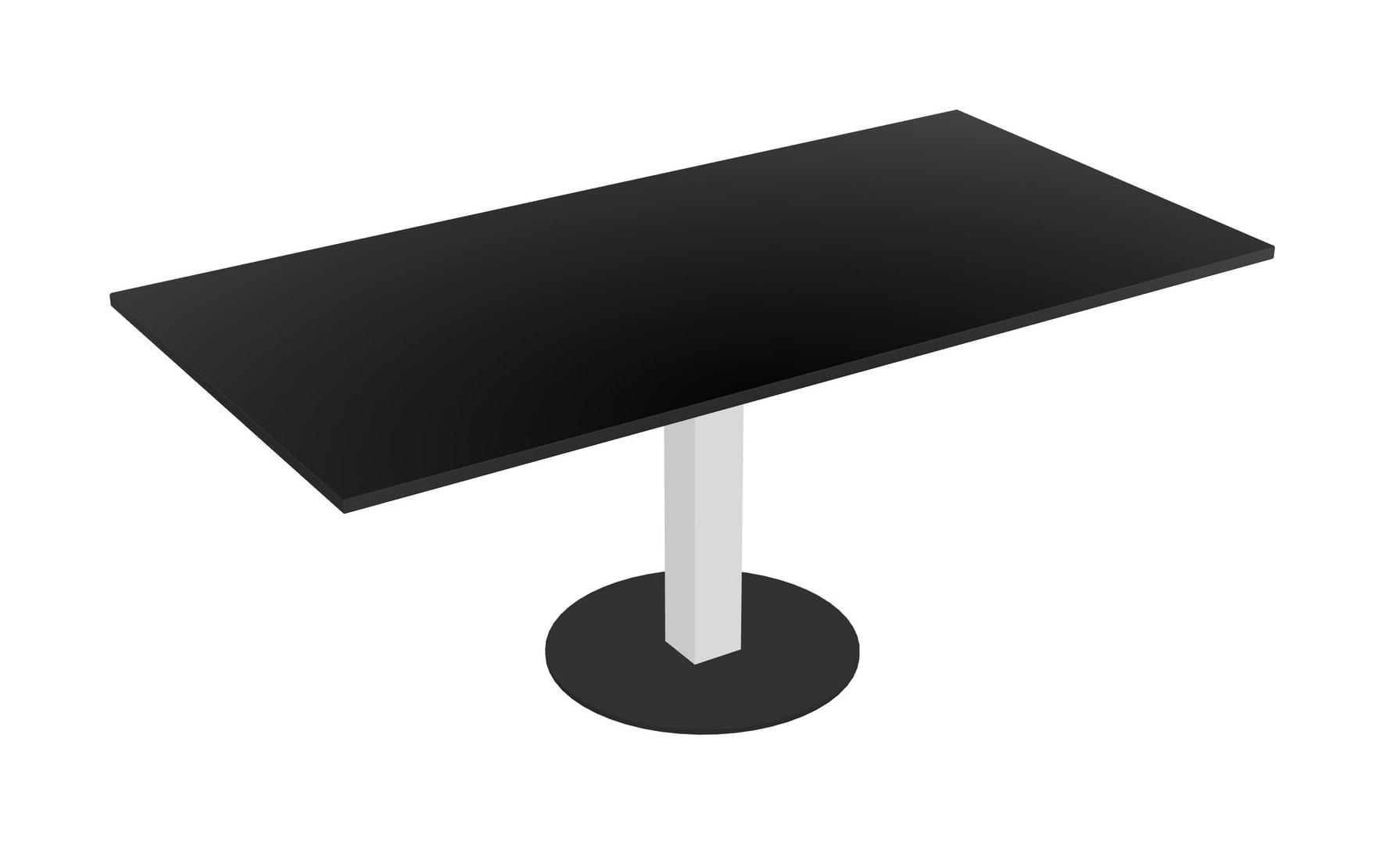 Modular Office, Restaurant, Cafeteria, Lunch Room & Food Service Table With Black Tabletop & White Square Leg & Black Round Base Plate