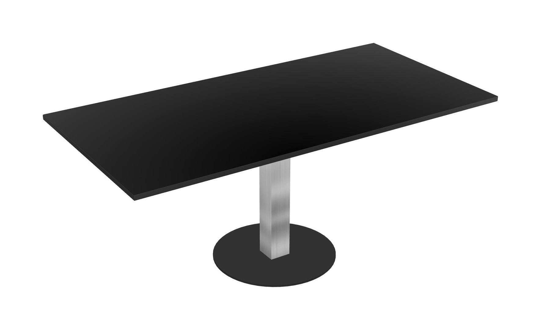 Modular Office, Restaurant, Cafeteria, Lunch Room & Food Service Table With Black Tabletop & Chrome Square Leg & Black Round Base Plate