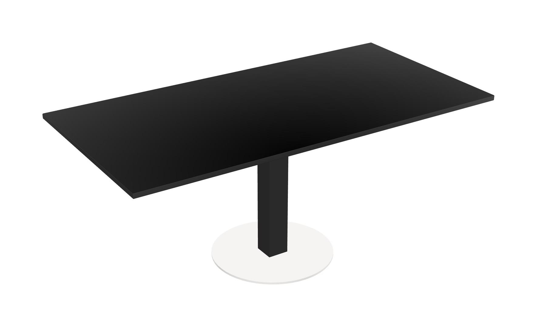 Modular Office, Restaurant, Cafeteria, Lunch Room & Food Service Table With Black Tabletop & Black Square Leg & White Round Base Plate