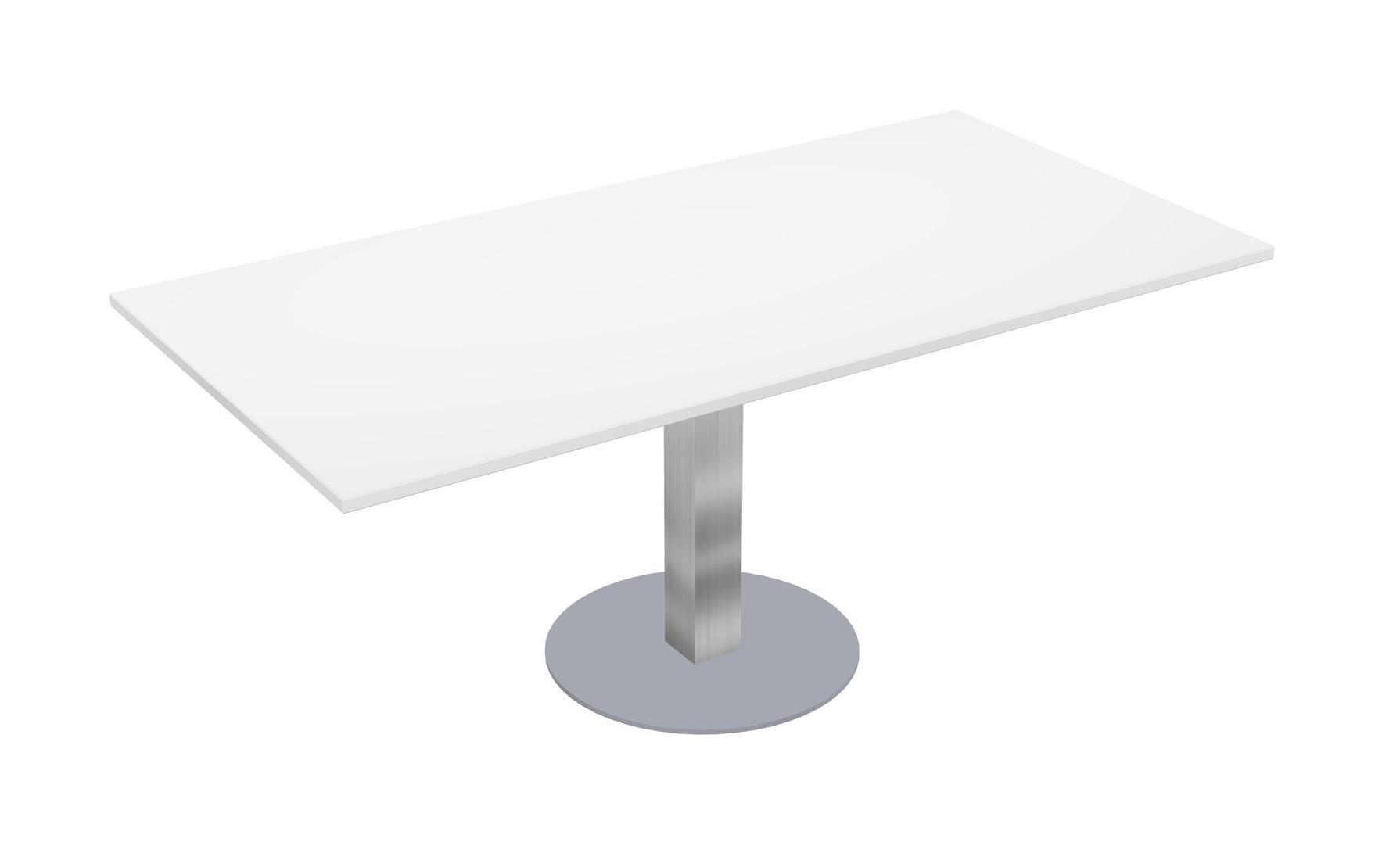 Modular Office, Restaurant, Cafeteria, Lunch Room & Food Service Table With White Tabletop & Chrome Square Leg & Grey Round Base Plate