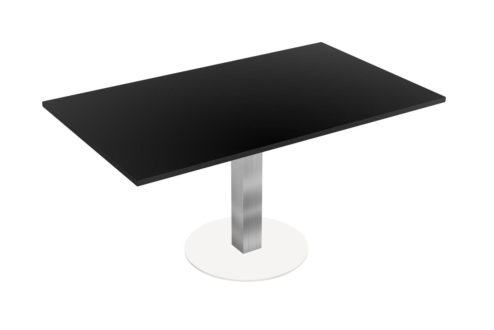 Modular Office, Restaurant, Cafeteria, Lunch Room & Food Service Table With Black Tabletop & Chrome Square Leg & White Round Base Plate
