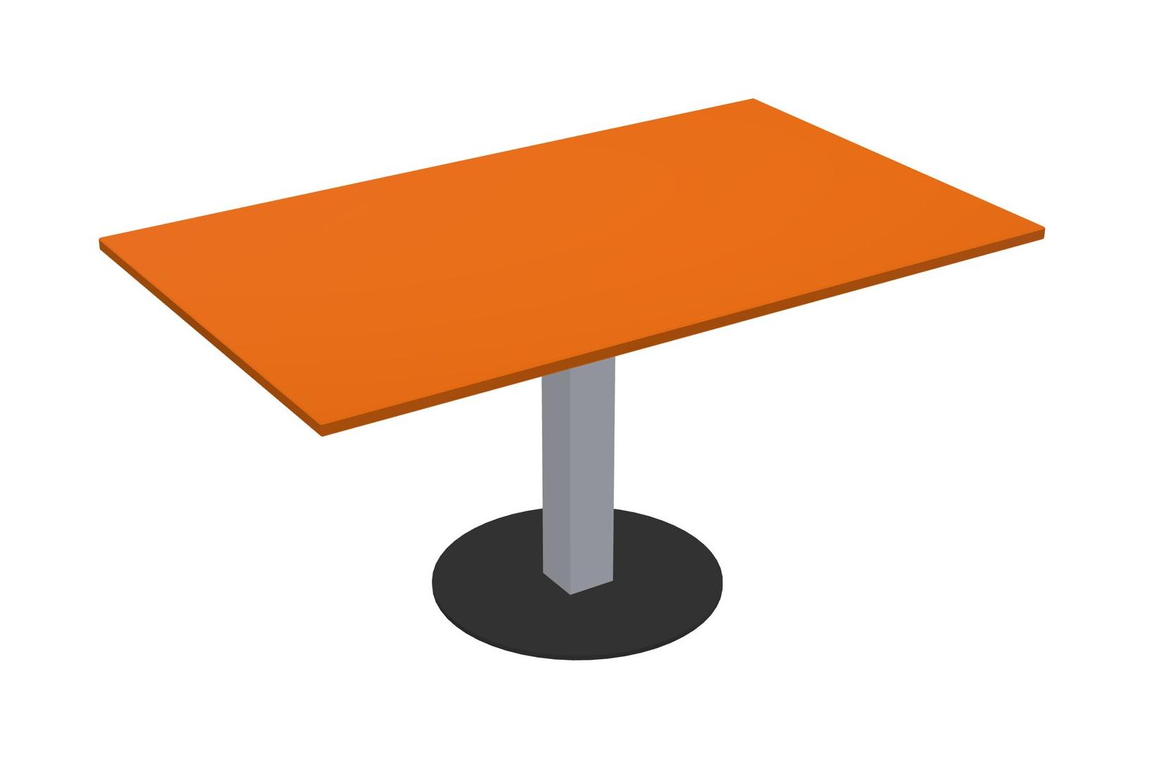 Modular Office, Restaurant, Cafeteria, Lunch Room & Food Service Table With Orange Tabletop & Grey Square Leg & Black Round Base Plate