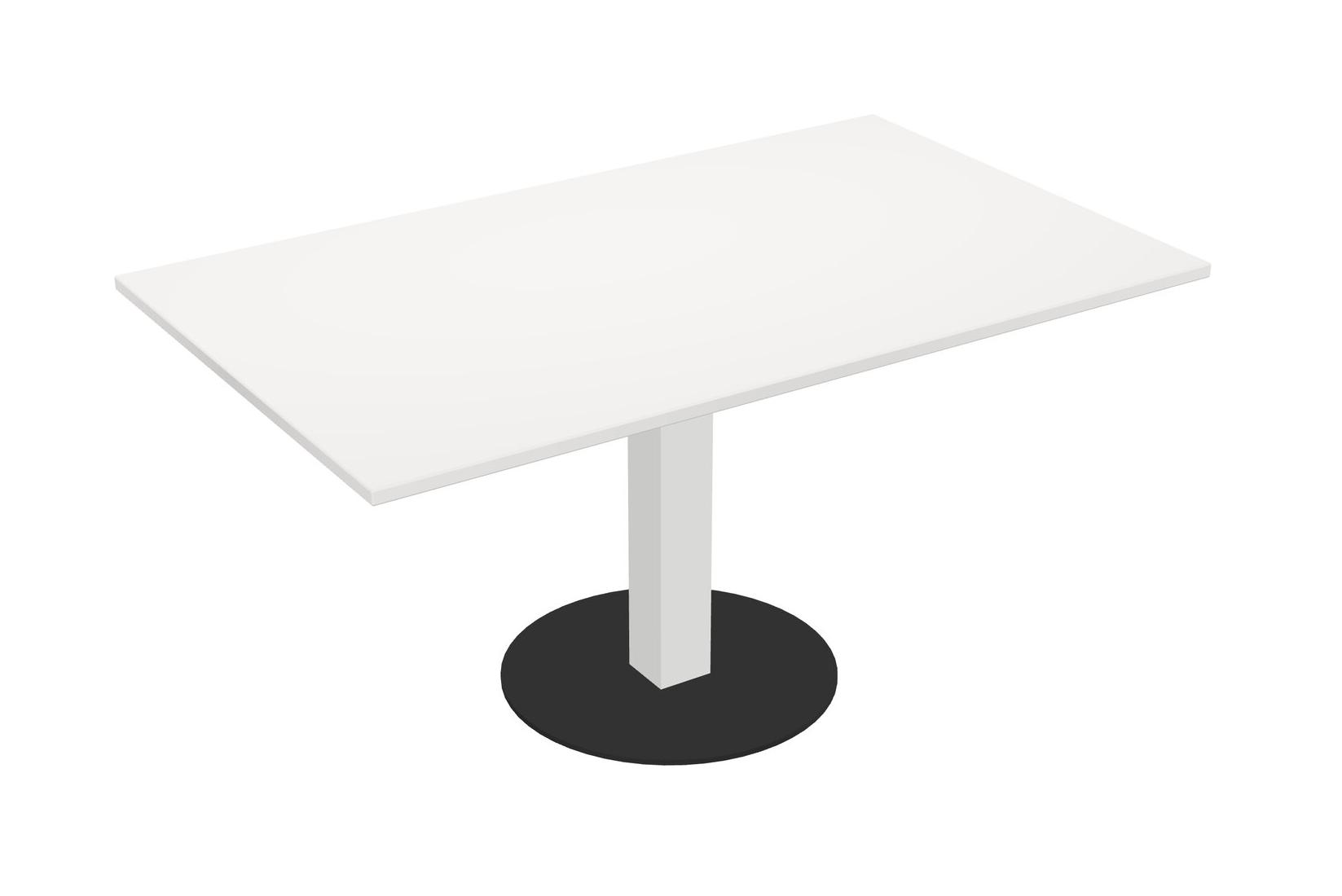 Modular Office, Restaurant, Cafeteria, Lunch Room & Food Service Table With White Tabletop & White Square Leg & Black Round Base Plate